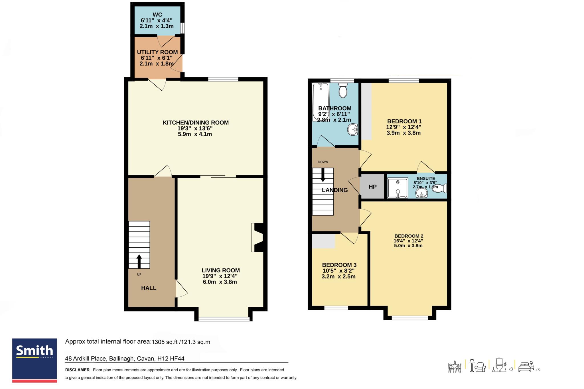 Extending to approximately 1,305 sq. ft., the residence has been thoughtfully designed to cater to the needs of modern family living. Upon entering, you are welcomed by a bright and inviting hallway that leads to a spacious sitting room featuring a fitted stove and a stylish media wall, creating a warm and comfortable atmosphere. The open-plan kitchen and dining area is filled with natural light and provides ample space for family gatherings or entertaining guests. A separate utility room offers practicality and convenience, while a well-placed guest WC completes the ground floor accommodation.