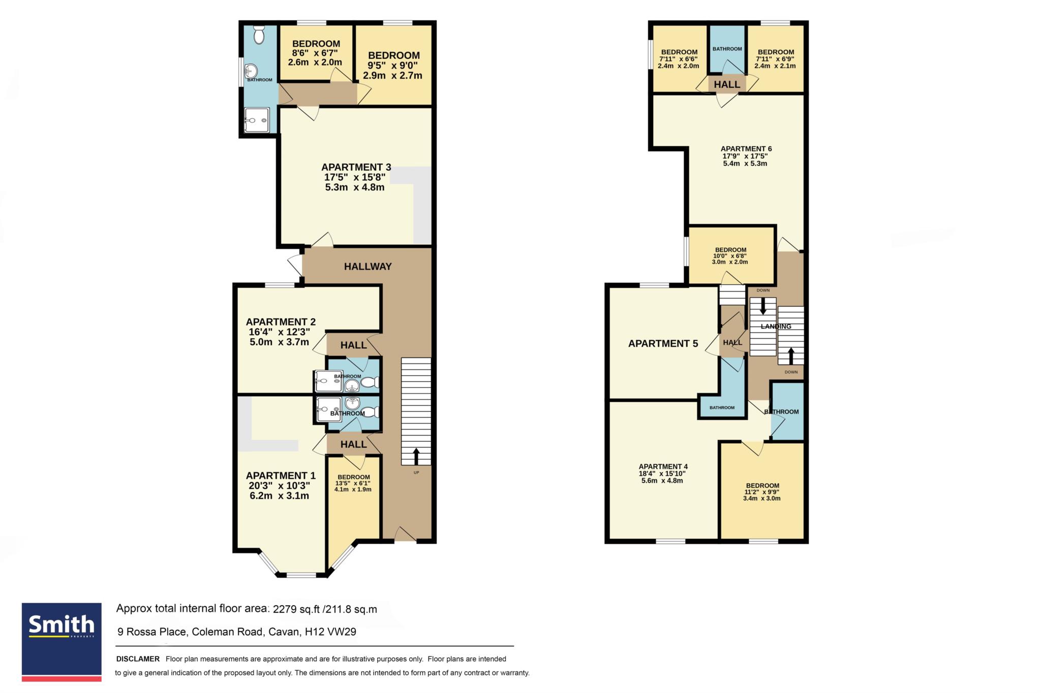 Extending to approximately 211.8 sq.m (2,280 sq.ft) over two floors, the property comprises a mix of one- and two-bedroom apartments, each designed and finished to a high standard. All units are individually metered, feature independent air conditioning systems, and are fully compliant with current fire safety, planning, and building regulations ensuring a turnkey, low-maintenance investment.